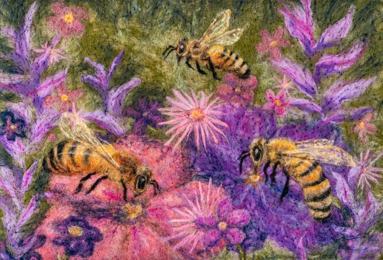 Three Bees & Aster Flowers. 12 x 18. $300.