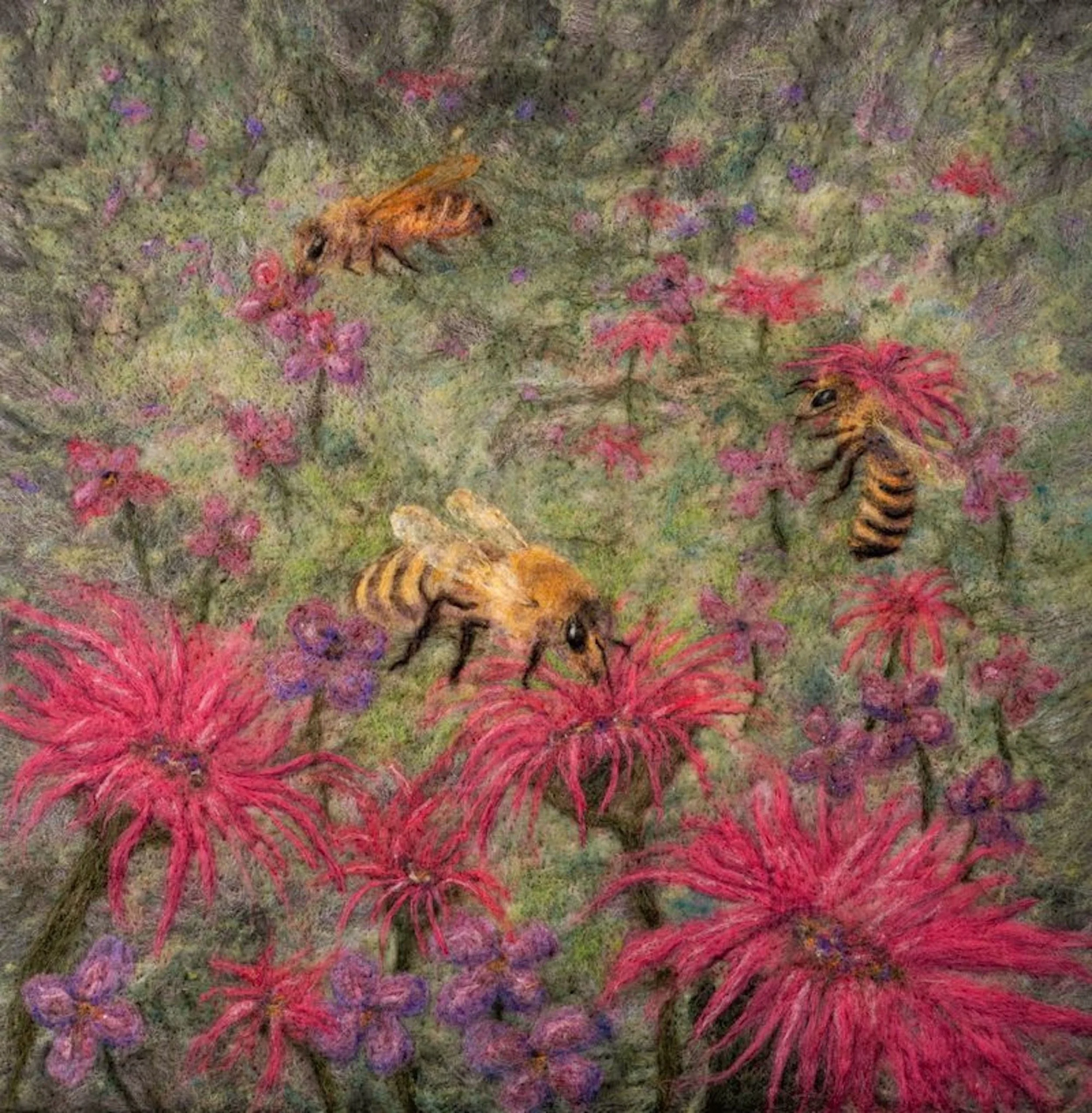 Three Bees on Pink Flowers. 24 x 24 Best in Show Florida State Honey Show November 2025. SOLD